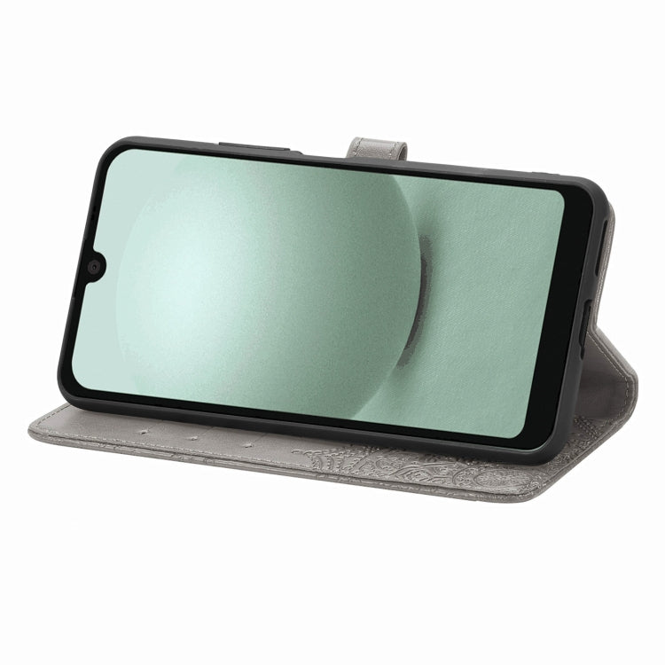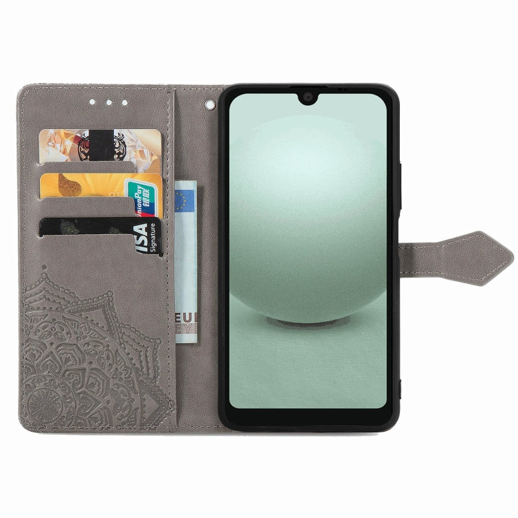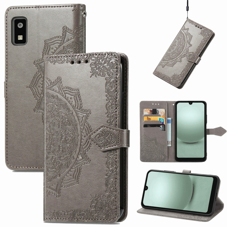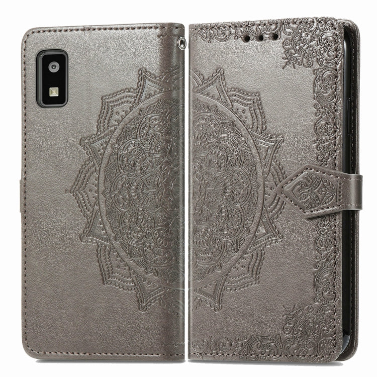 Funda de Cuero para Sharp Aquos Wish 3 Mandala Flower en Relieve (Gris)