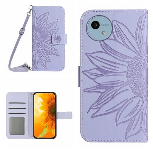 Funda para Sharp Aquos Wish 4 de Cuero con Tapa en Relieve y Cordón (Púrpura)