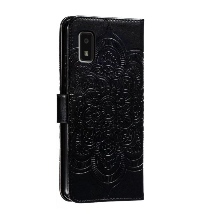 Funda de Cuero para Sharp Aquos Wish con Patrón En Relieve Sun Mandala (Negro)