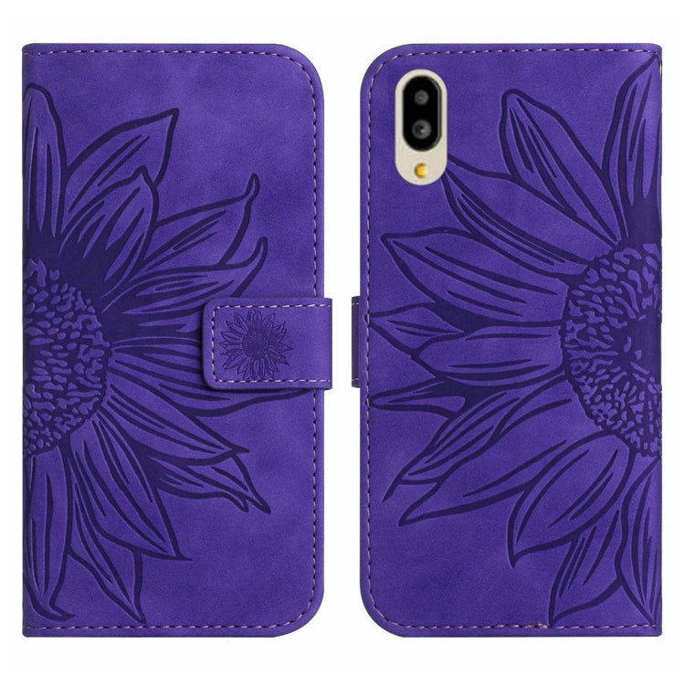 Funda para Sharp Simple Sumaho 6 Flip de Cuero con Cordón y Patrón Girasol (Púrpura Oscuro)