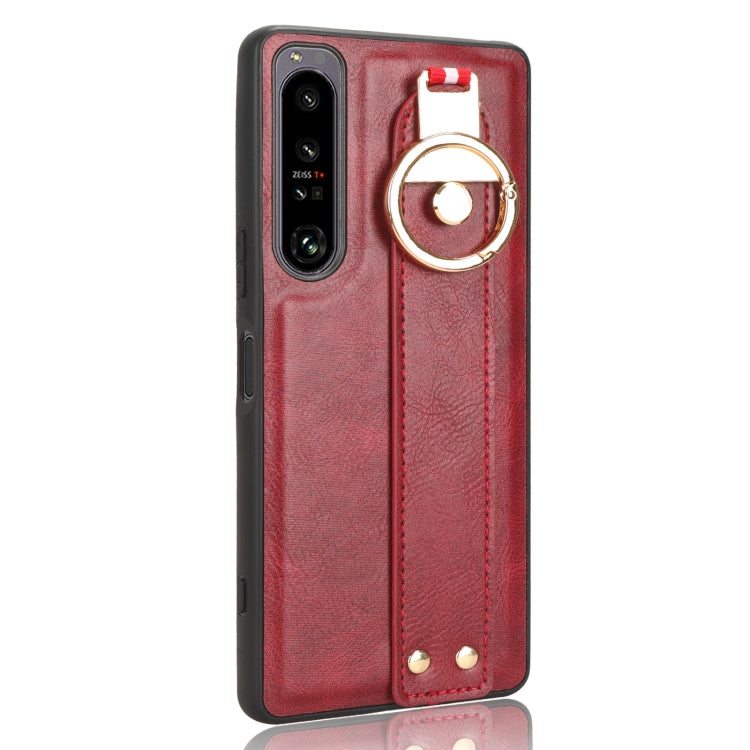 Funda Trasera de Cuero para Sony Xperia 1 III con Muñequera (Rojo)