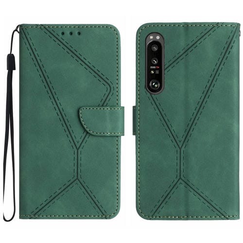 Estuche para Sony Xperia 1 IV de Cuero con Costuras en Relieve (Verde)