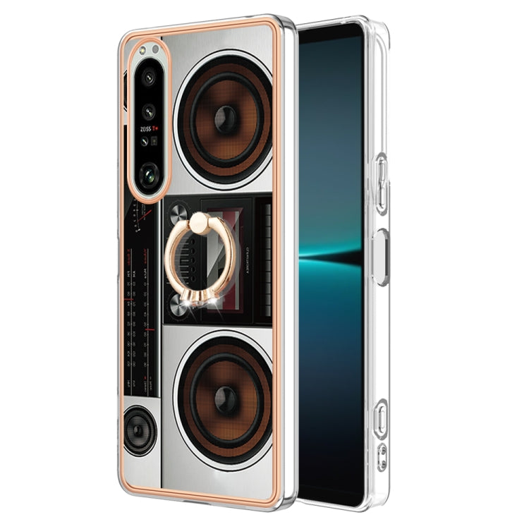 Estuche para Sony Xperia 1 IV IMD Doble Cara con Galvanoplastia y Soporte para Anillo (Radio Retro)