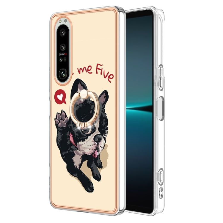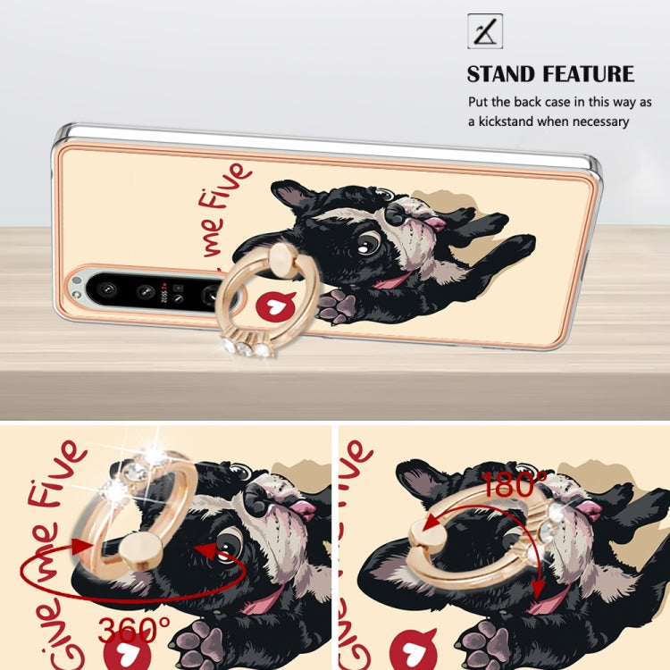 Funda para Sony Xperia 1 IV Galvanoplastia IMD Doble Cara con Soporte para Anillo (Perro de la Suerte)
