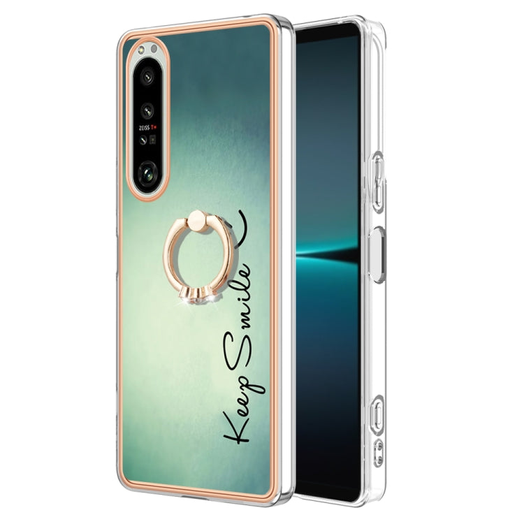 Funda para Sony Xperia 1 IV Galvanoplastia IMD Doble Cara con Soporte para Anillo (Sonrisa)