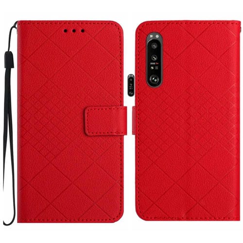 Funda de Cuero para Sony Xperia 1 V con Textura de Rejilla Rómbica (Rojo)