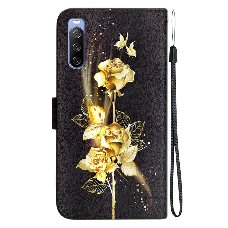 Funda para Sony Xperia 10 III de Cuero con Dibujo Coloreado y Textura de Cristal (Mariposa Dorada Rosa)