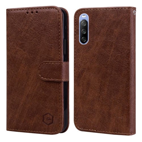 Funda para Sony Xperia 10 III PU + TPU Textura de Cuero Aceitoso (Marrón)