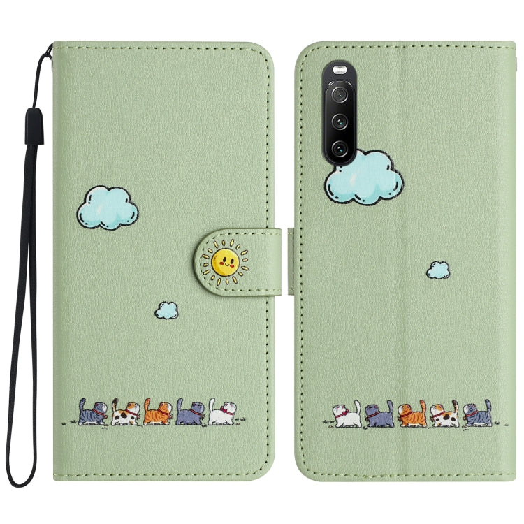 Funda de Cuero para Sony Xperia 10 IV con Gatos de Dibujos Animados (Verde)