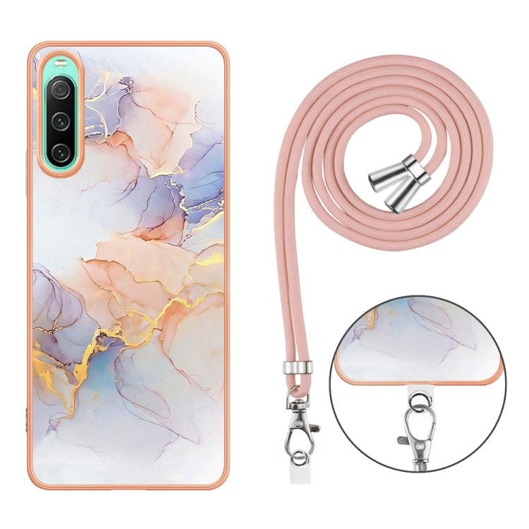Funda TPU para Sony Xperia 10 IV con Galvanoplastia IMD y Cordón (Mármol Blanco)