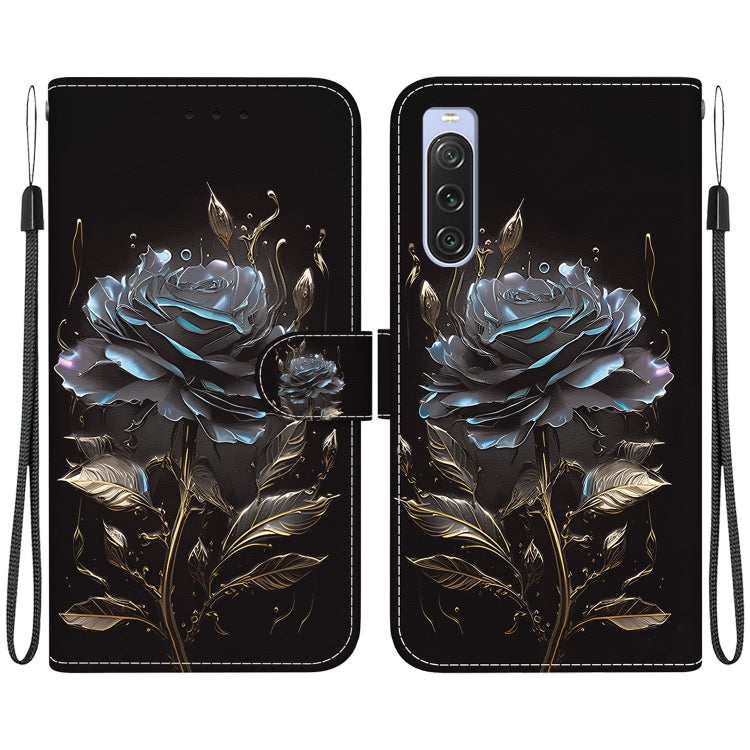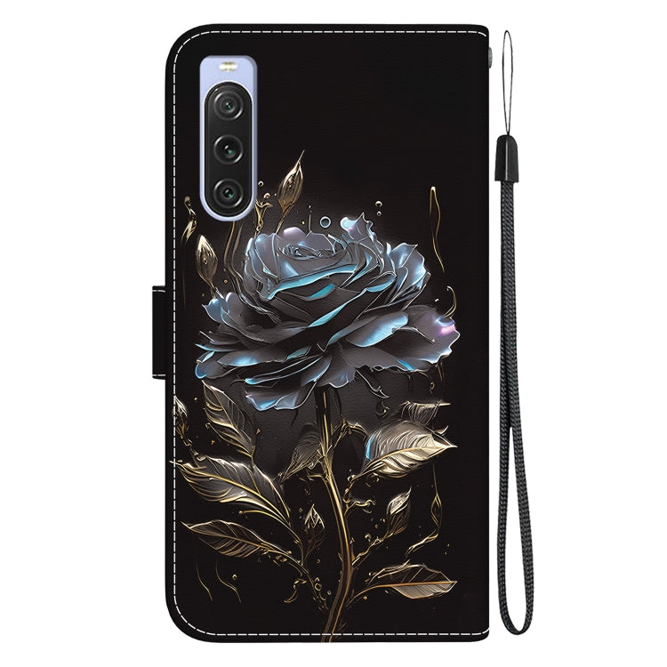 Funda de Cuero para Sony Xperia 10 V (2023) con Dibujo Coloreado y Textura de Cristal (Rosa Negra)