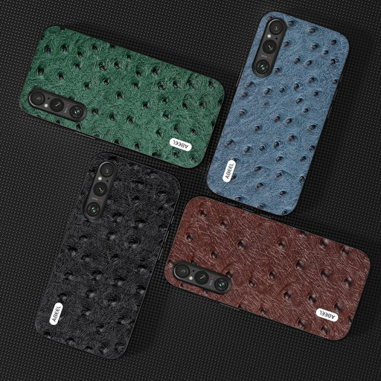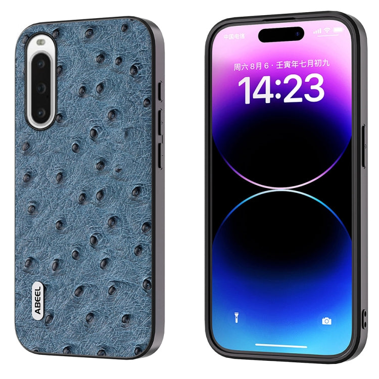 Funda para Sony Xperia 10 V Abeel Cuero Genuino con Textura de Avestruz (Azul)
