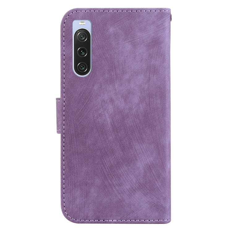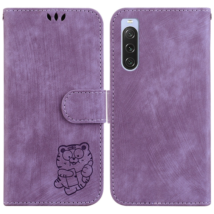Funda de Cuero para Sony Xperia 10 V con Relieve Little Tiger (Púrpura)