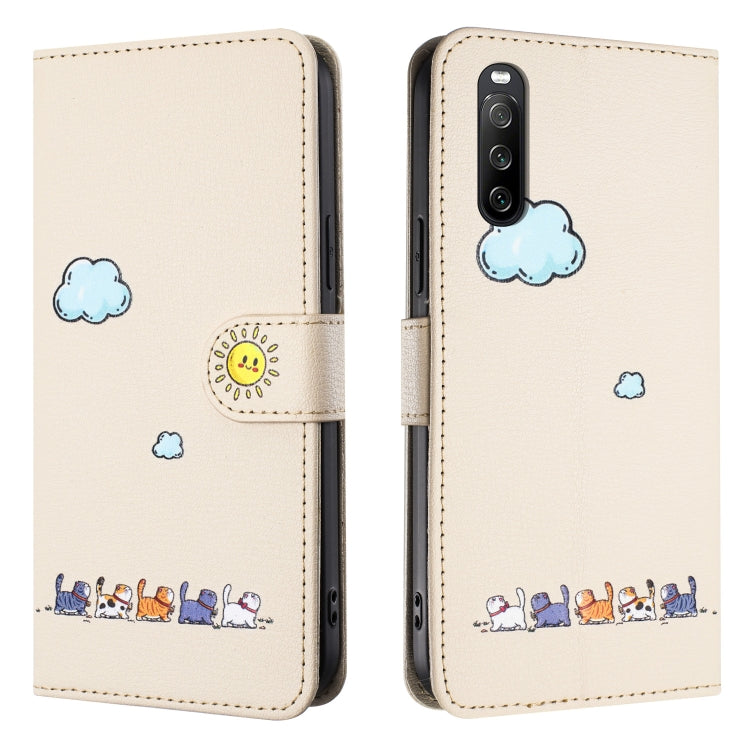 Funda de Cuero para Sony Xperia 10 V con Gatos de Dibujos Animados (Beige Blanco)