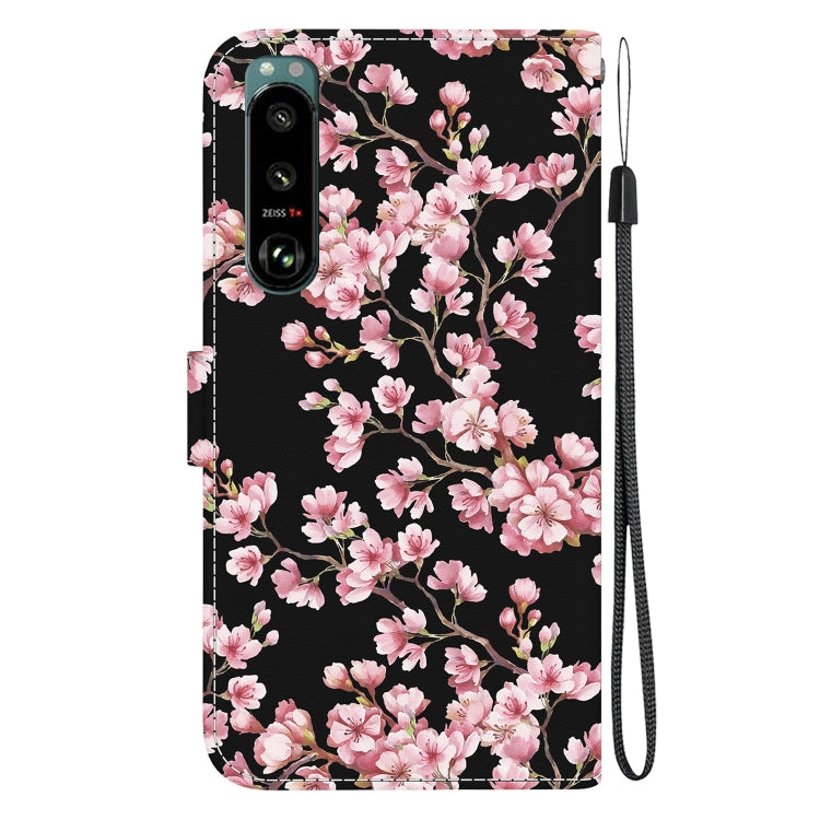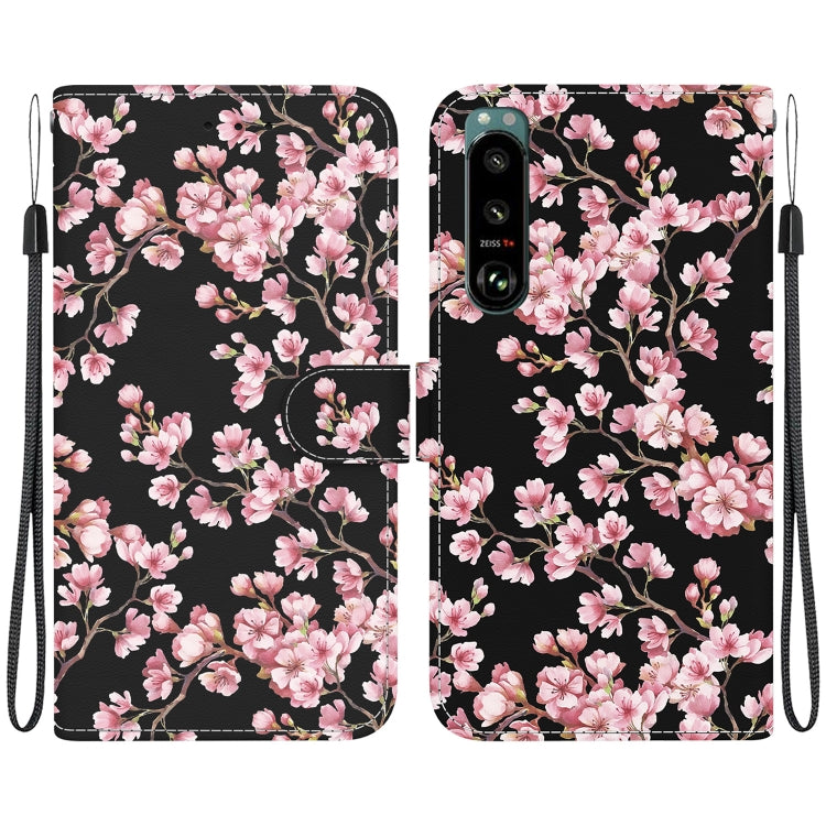 Estuche para Sony Xperia 5 III de Cuero con Dibujo Coloreado y Textura de Cristal (Flor de Ciruelo)