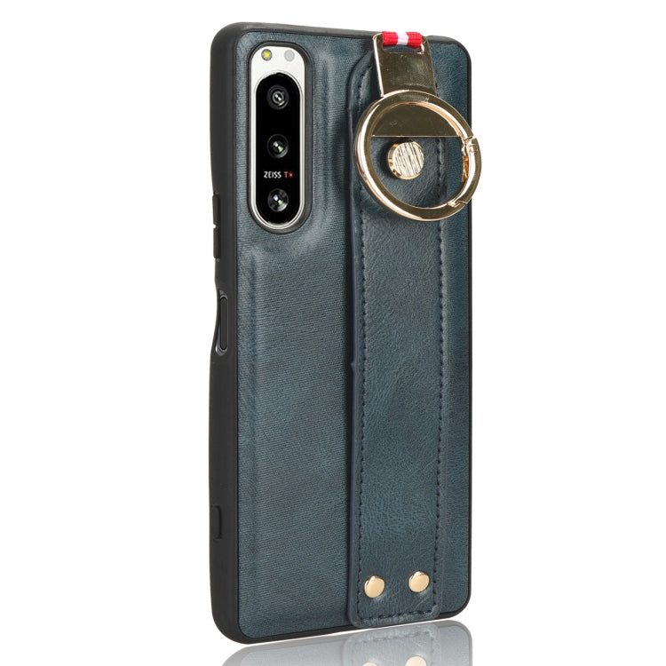 Funda Trasera de Cuero con Muñequera para Sony Xperia 5 III (Azul)