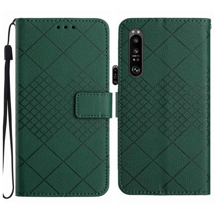 Funda de Cuero para Sony Xperia 5 IV con Textura de Rejilla Rómbica (Verde)
