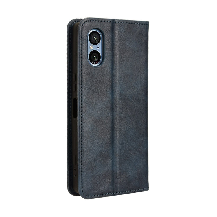 Funda para Sony Xperia 5 V 2023 de Cuero con Textura Retro y Hebilla Magnética (Azul)