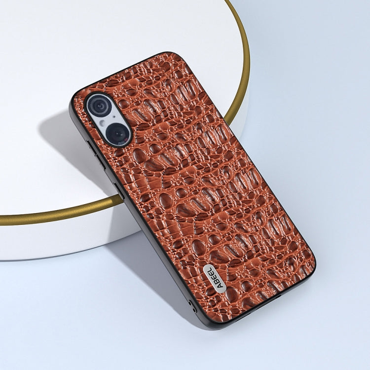 Funda para Sony Xperia 5 V Abeel con Dosel de Cuero Genuino y Borde Negro (Marrón)