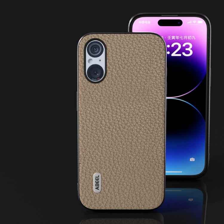 Funda para Sony Xperia 5 V Abeel Cuero Genuino Textura Litchi (Gris)