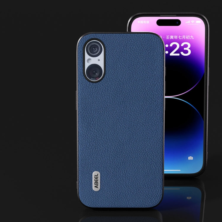 Funda para Sony Xperia 5 V Abeel Cuero Genuino Textura Litchi + PC (Azul)