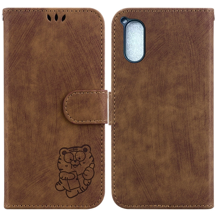 Funda de Cuero para Sony Xperia 5 V con Relieve Little Tiger (Marrón)