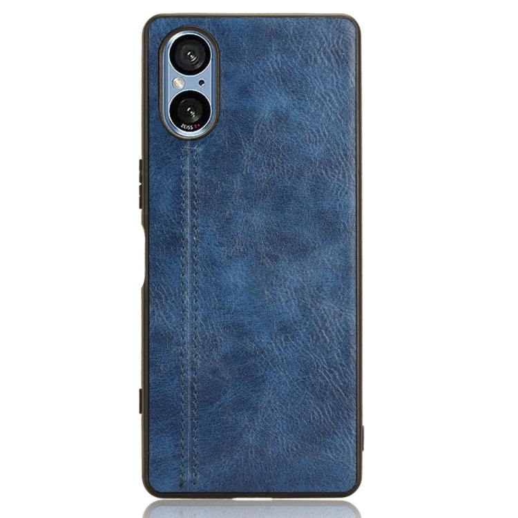 Funda para Sony Xperia 5 V con Patrón de Vaca Costura PC + PU + TPU (Azul)