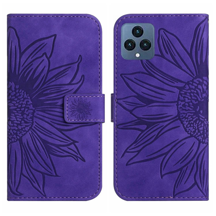 Funda Flip de Cuero T-Mobile Revvl 6 5G con Cordón y Diseño Sun Flower (Morado Oscuro)