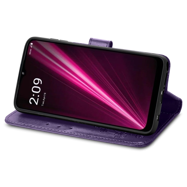 Estuche para Teléfono T-Mobile Revvl 6 Pro 5G Cuero Hebilla Relieve Cierre Cuatro Hojas (Púrpura)