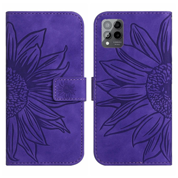 Funda Flip de Cuero para T-Mobile Revvl 6 Pro 5G con Cordón y Diseño Sun Flower (Morado Oscuro)