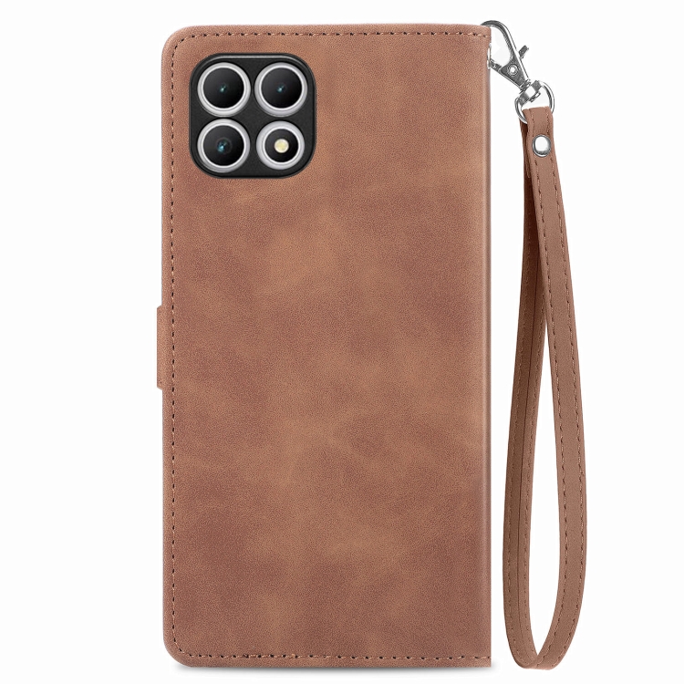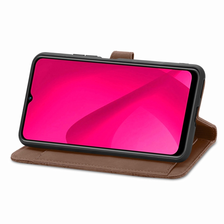 Funda de Cuero para T-Mobile Revvl 7 5G con Cremallera y Flor en Relieve (Marrón)