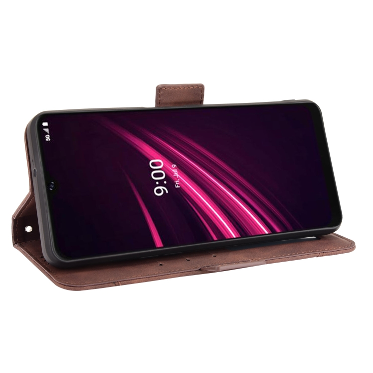 Funda de Cuero Horizontal para T-Mobile Revvl V + 5G con Soporte, Ranuras para Tarjetas y Marco de Fotos (Marrón)