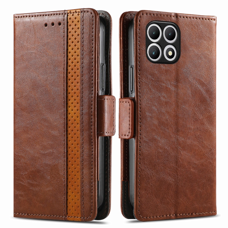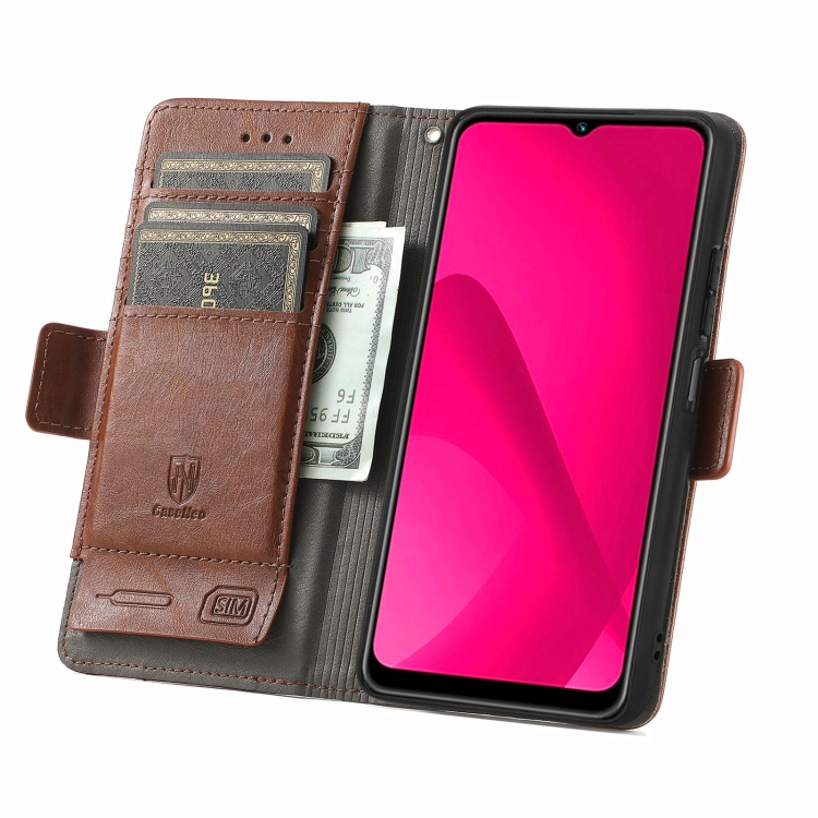 Funda de Cuero Caseneo para T-Mobile T Phone 2 5G con Hebilla Magnética Dual (Marrón)