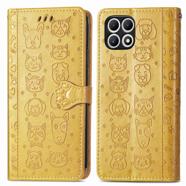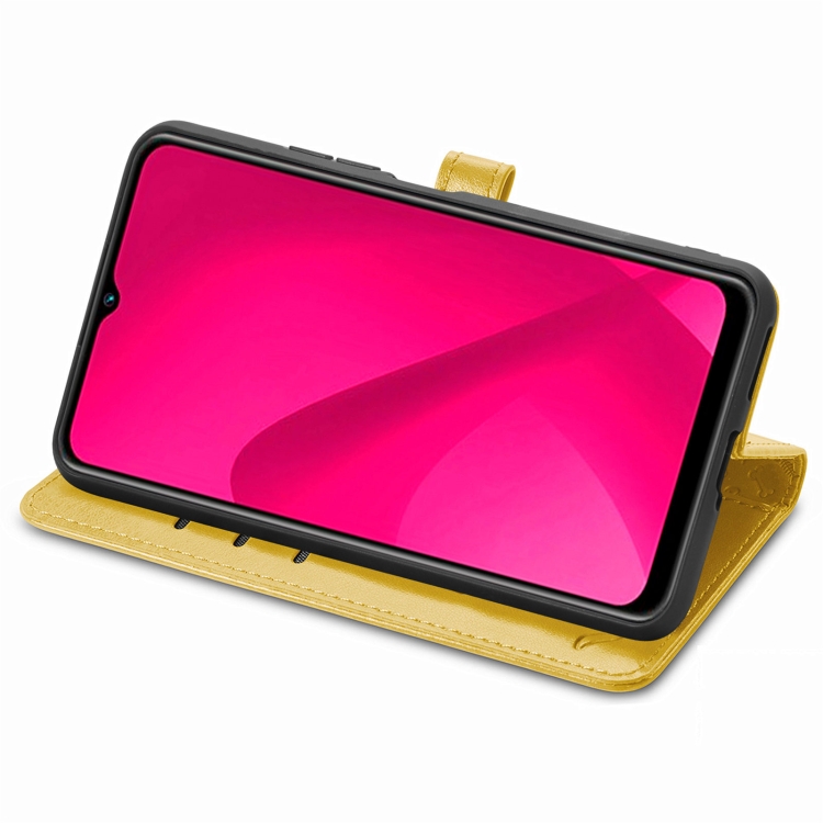 Funda de Cuero para T-Mobile T Phone 2 Pro 5G con Relieve Perros y Gatos (Amarillo)
