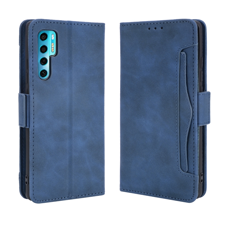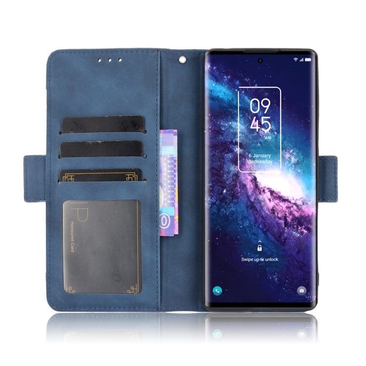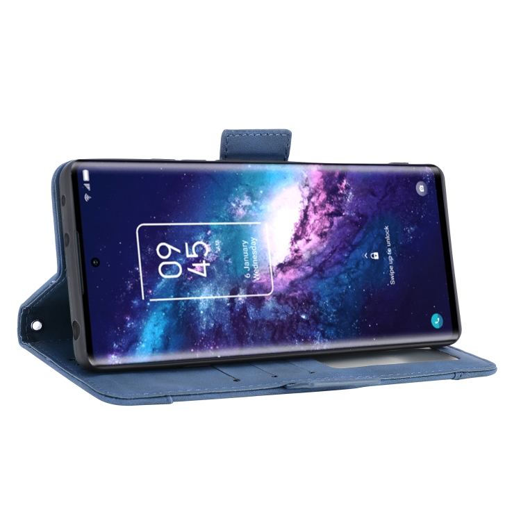 Funda de Cuero para TCL 20 Pro 5G con Patrón de Pantorrilla, Soporte, Ranuras para Tarjetas y Marco de Fotos (Azul)