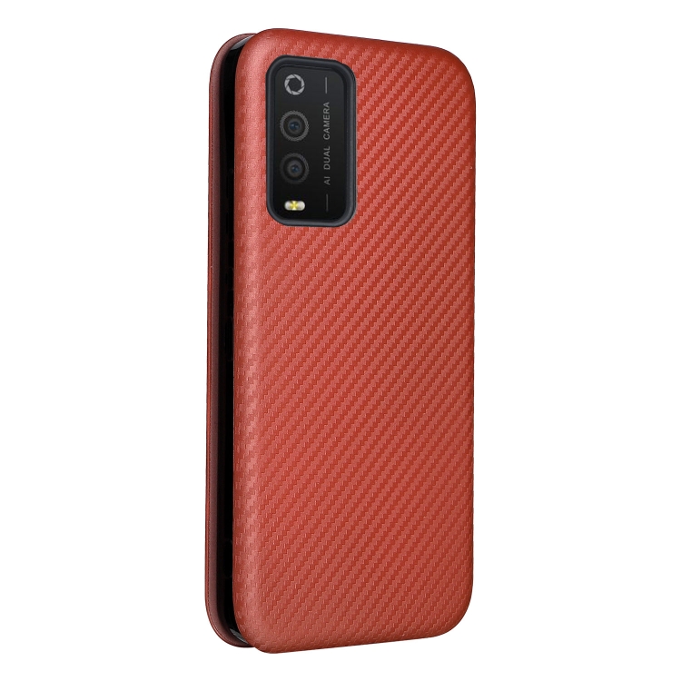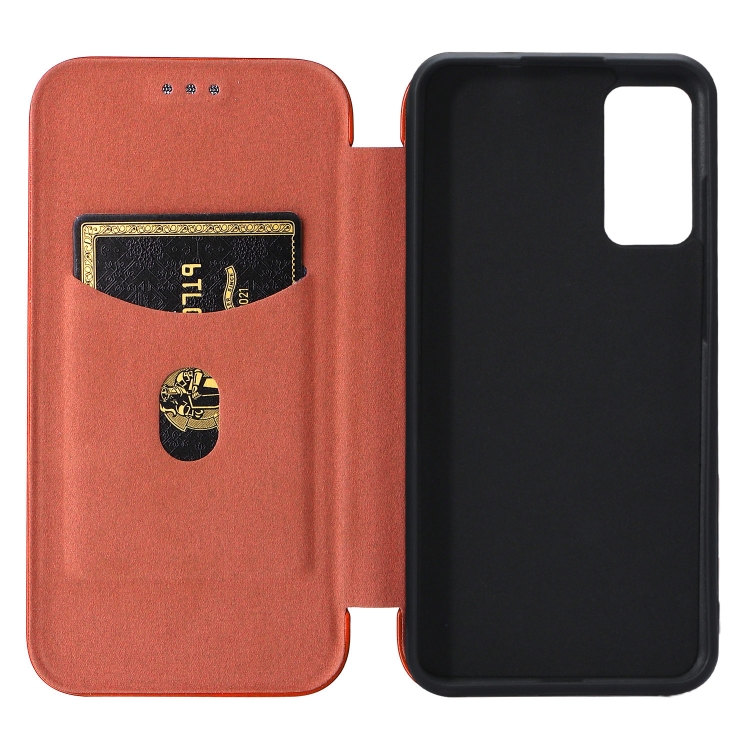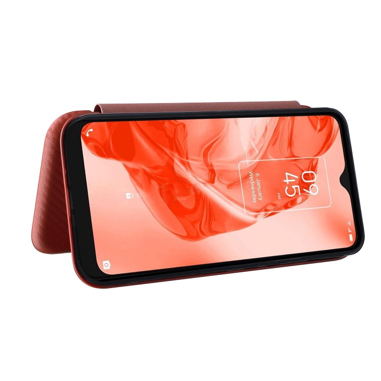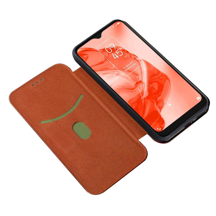 Funda de Cuero para TCL 205 Fibra de Carbono Textura Magnético Horizontal Flip (Marrón)
