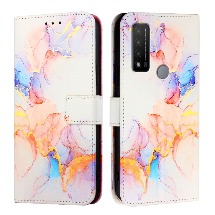 Funda de Cuero con Tapa para Tcl 20R 5G Pt003 con Patrón Mármol (Blanco)