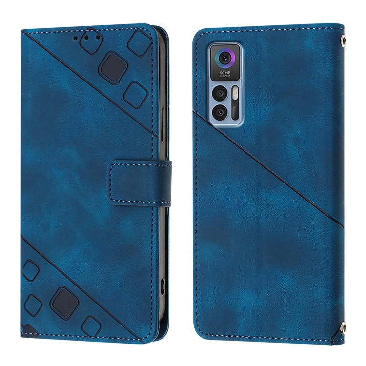 Funda de Cuero Skin Feel para TCL 30 4G en Relieve (Azul)