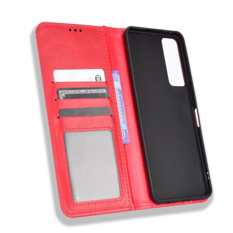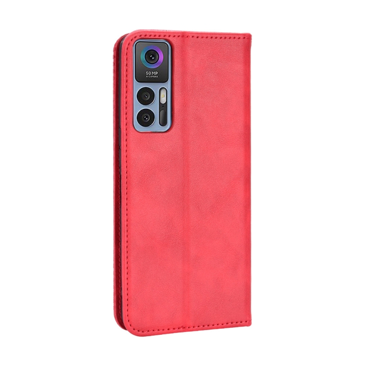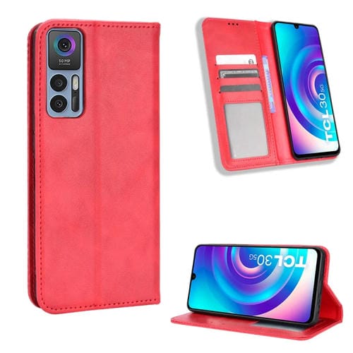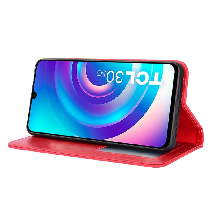 Funda de Cuero para TCL 30 5G / 30+ con Hebilla Magnética y Textura Retro (Rojo)
