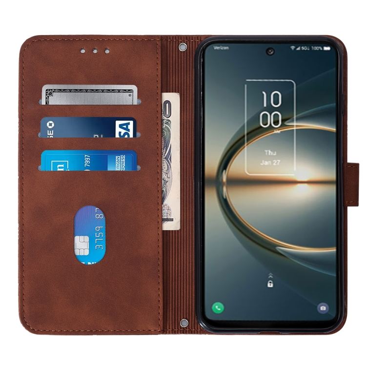 Funda de Cuero para TCL 30 V 5G T781S / 30Xe 5G Crossbody 3D con Tapa En Relieve (Marrón)
