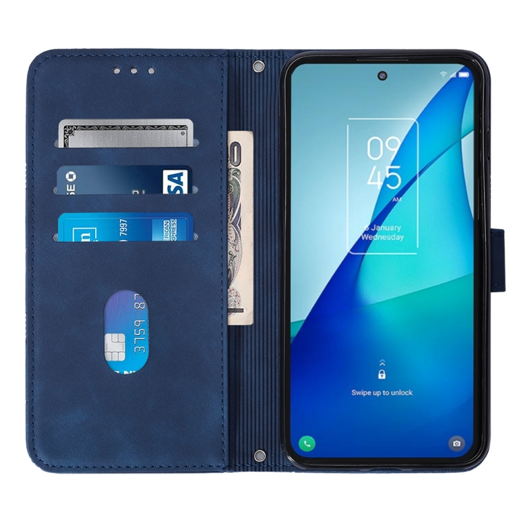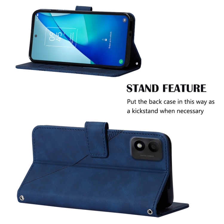 Funda de Cuero para TCL 303 Crossbody con Tapa en Relieve (Azul)