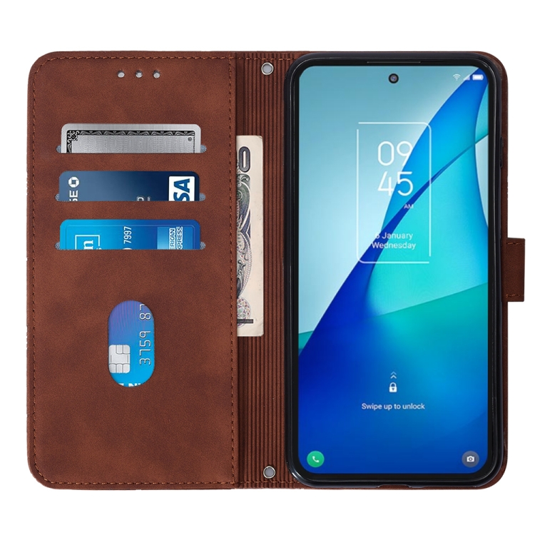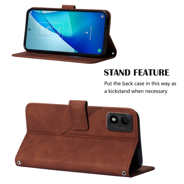 Funda de Cuero para TCL 303 Crossbody con Tapa En Relieve (Marrón)