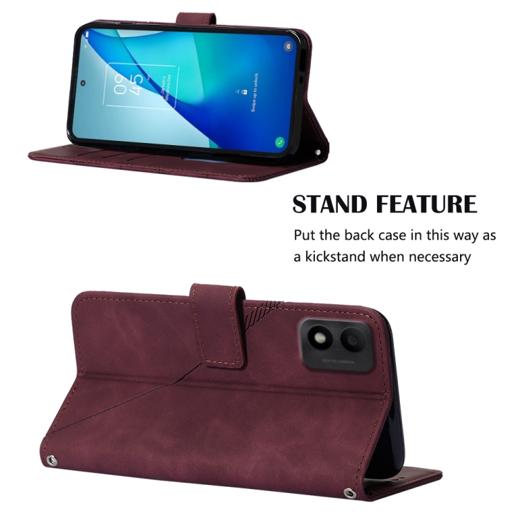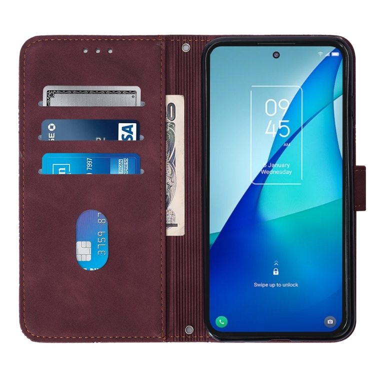 Funda de Cuero para TCL 303 Crossbody 3D con Tapa En Relieve (Rojo Vino)