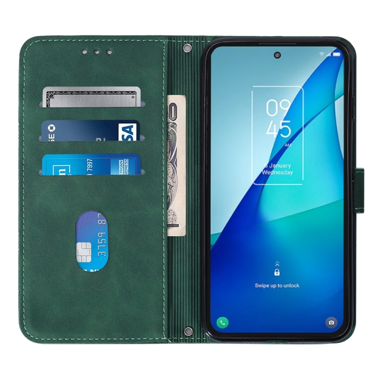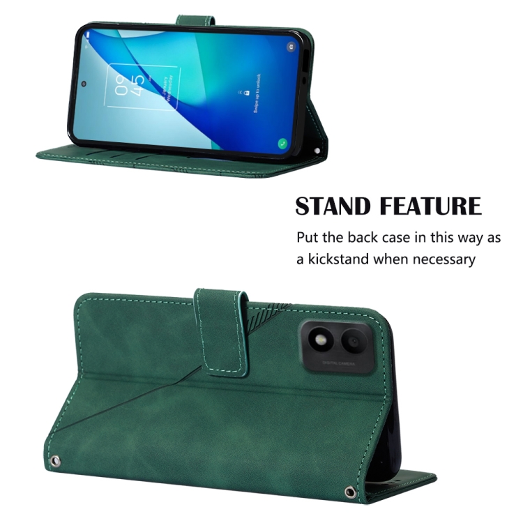 Funda de Cuero para TCL 303 Crossbody con Tapa en Relieve (Verde Oscuro)