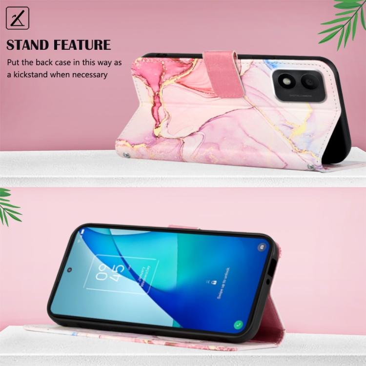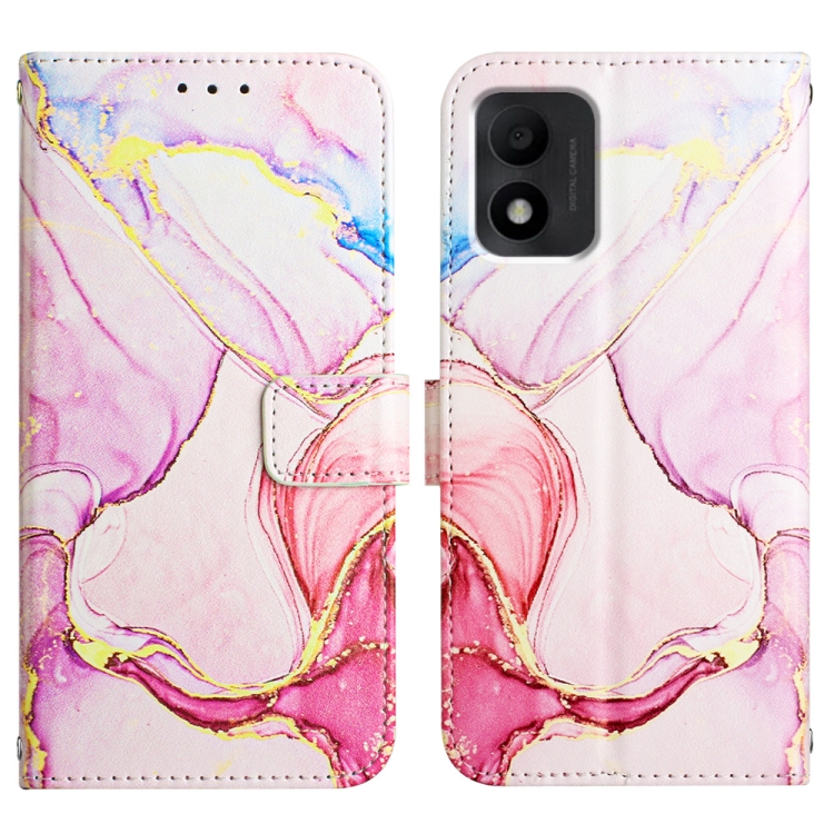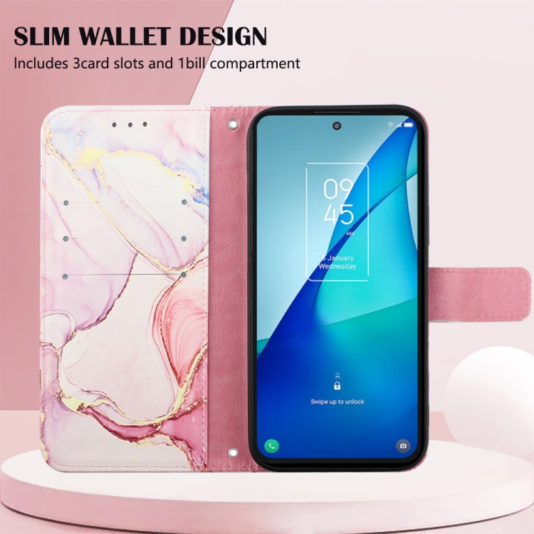 Funda de Teléfono TCL 303 Pt003 con Tapa de Cuero y Diseño Mármol (Oro Rosa)