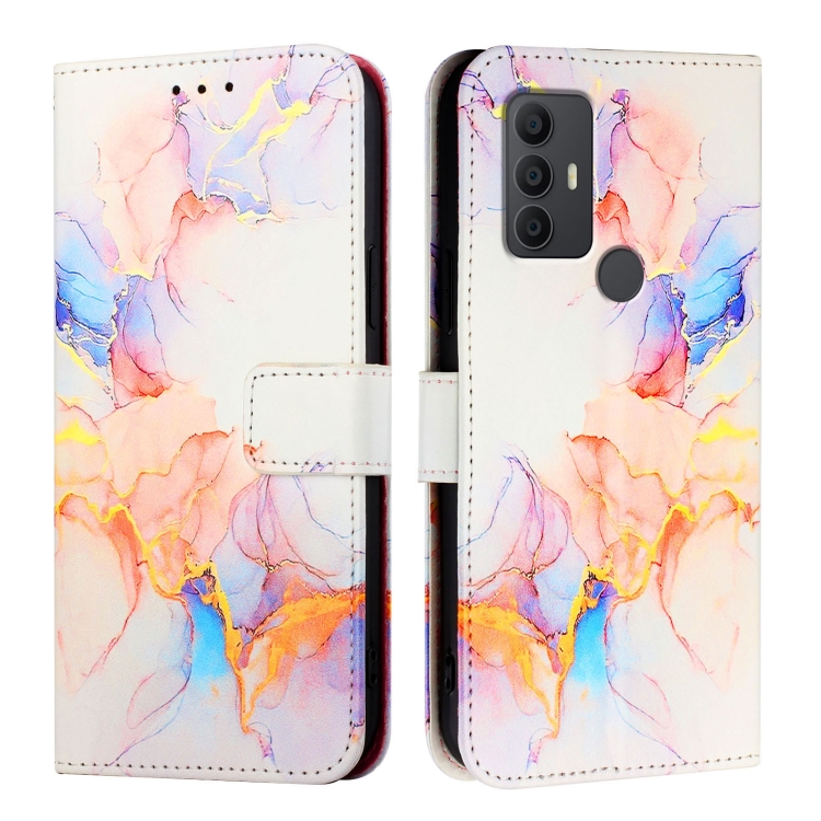 Funda de Cuero con Tapa para TCL 305/306/30 SE AL02 PT003 con Patrón Mármol (Blanco)