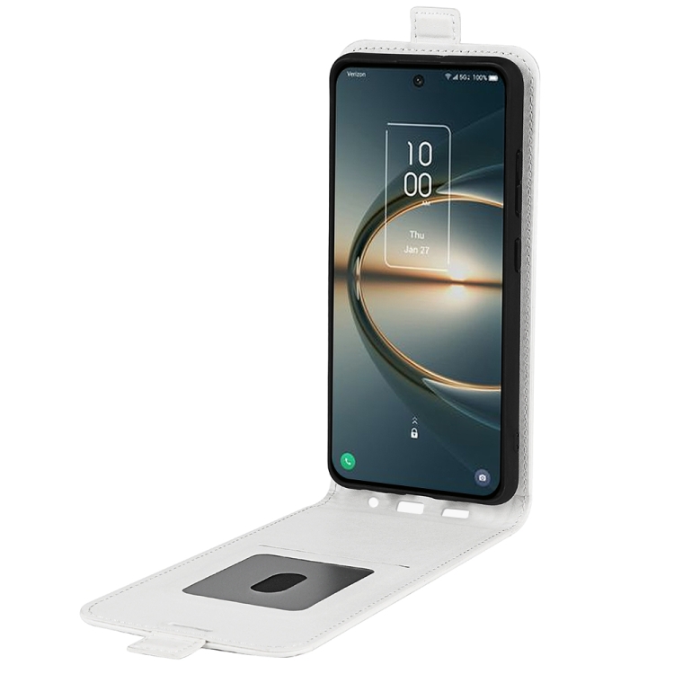 Funda de Cuero Vertical para TCL 30V 5G R64 Textura Una Sola (Blanco)