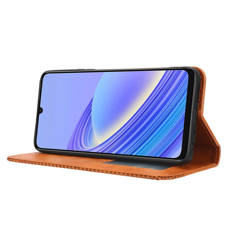 Funda de Cuero para TCL 40 Se con Hebilla Magnética y Textura Retro (Marrón)