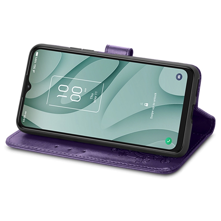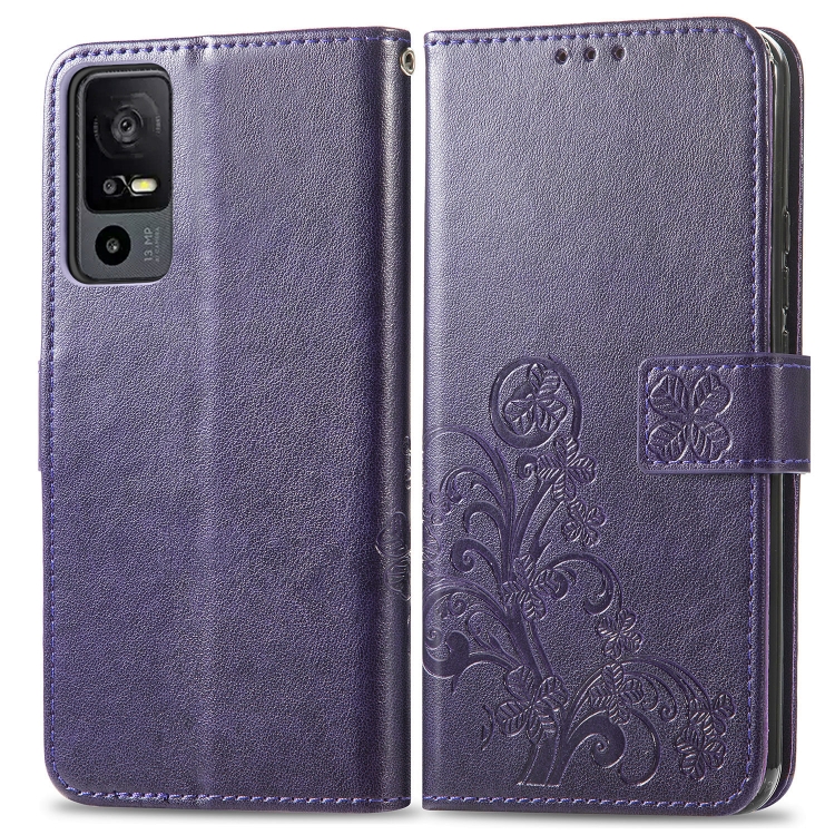 Estuche para TCL 40 Xe 5G de Cuero con Hebilla en Relieve y Cierre de Cuatro Hojas (Púrpura)