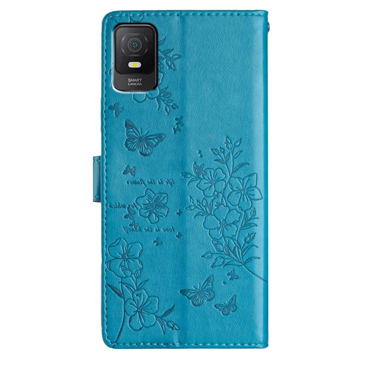 Funda de Cuero para TCL 403 Butterfly Love Flower en Relieve (Azul)